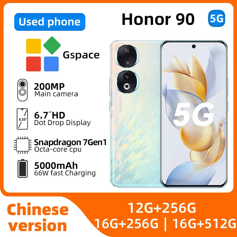 HONOR 90 5G Android Smartphone CPU Qualcomm Snapdragon 7 Gen 1 6.7 Inch OLED Screen 200MP Camera 5000mAh Battery Used Phone